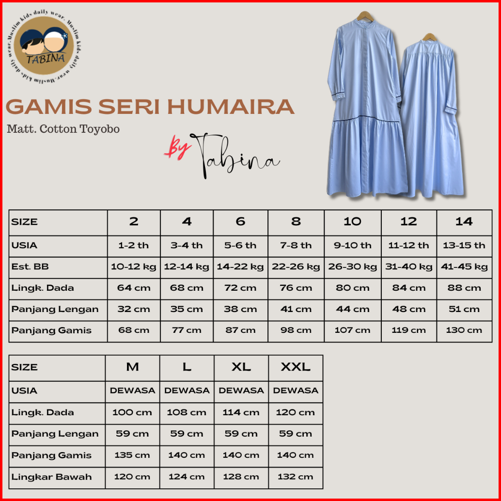 Tabina Gamis Anak Dan Remaja Bisa Couple Dewasa Seri Humaira Usia 2 Hingga 16 Tahun