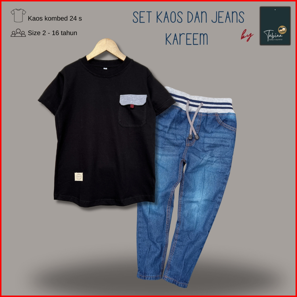 Tabina Setelan Kaos Anak Laki Laki Remaja Lengan Pendek Seri Kareem Whisker Usia 2 Sampai 16 Tahun