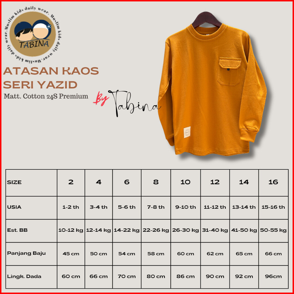 Tabina Kaos Kurta Pocket Tee Anak Laki Laki Dan Remaja Kombed 24s Seri Yazid Usia 2 Hingga 16 Tahun