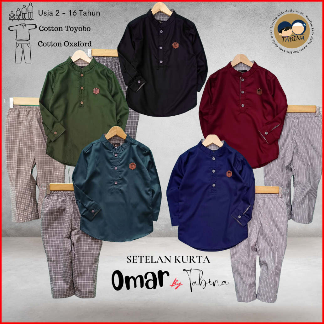 Tabina Setelan Koko Kurta Anak Sampai Remaja Seri Omar Lengan Panjang Usia 2 Hingga 15 Tahun