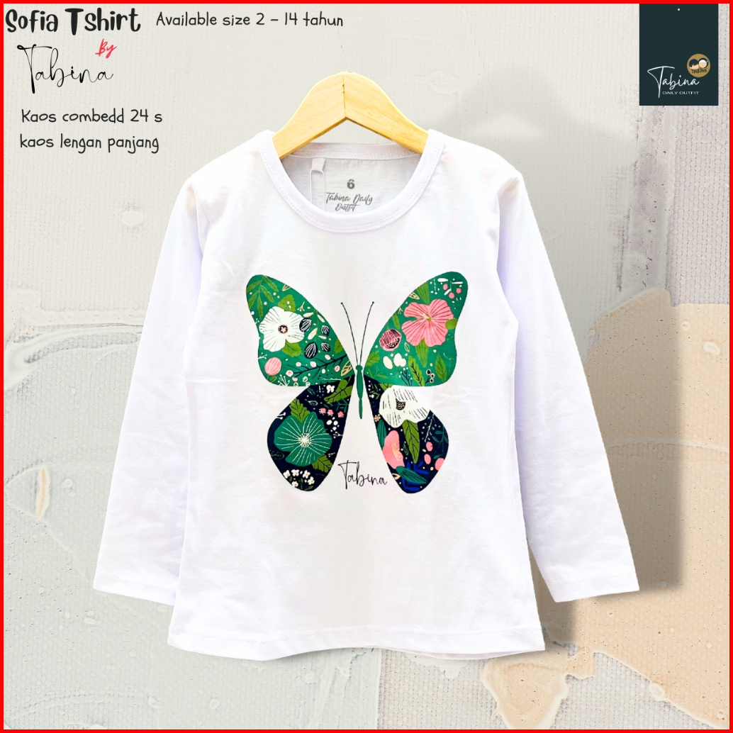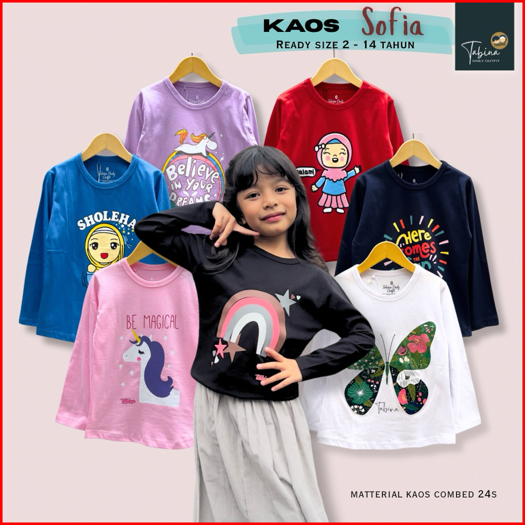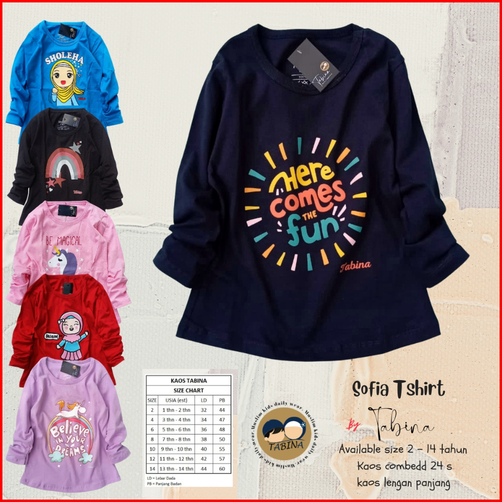Tabina Kaos Anak Perempuan Lengan Panjang Seri Sofia Usia 2 Tahun Hingga 14 Tahun Max Bb 45 Kg
