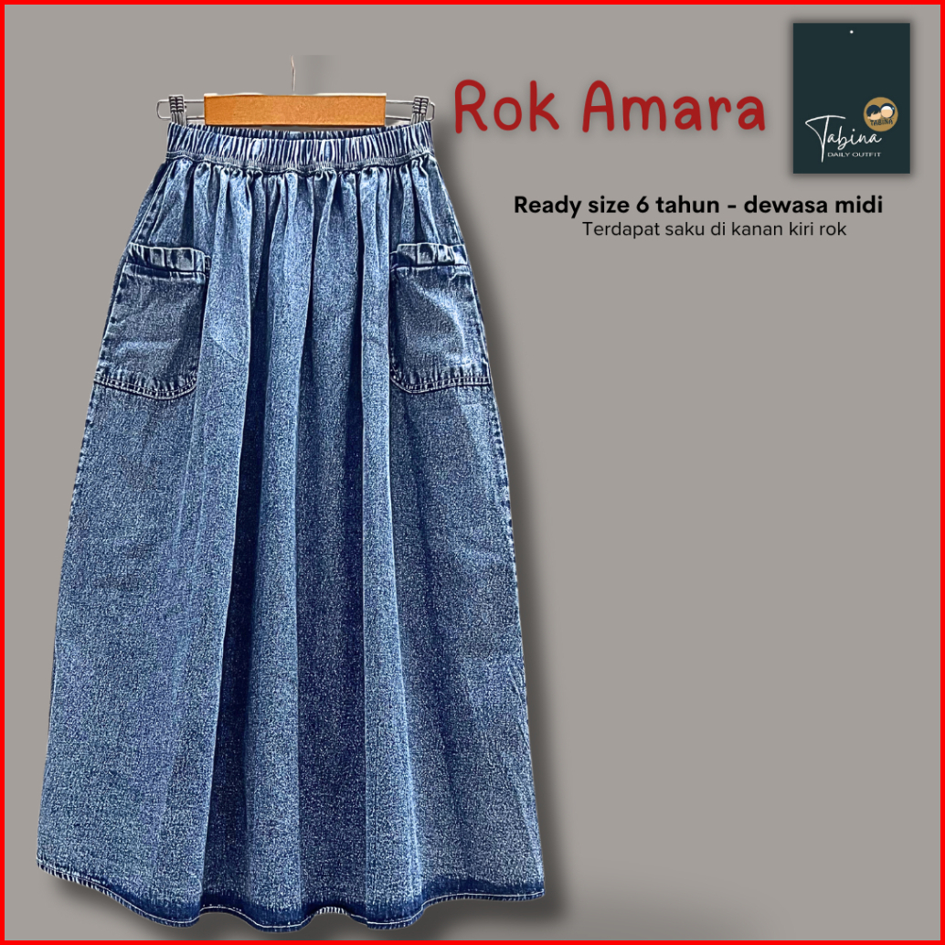 Tabina Rok Jeans Denim Anak Remaja Hingga Dewasa Tabina Seri Amara Untuk Usia 5 Tahun - Dewasa Midi