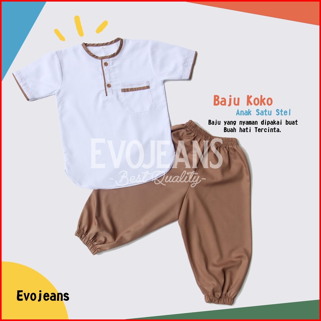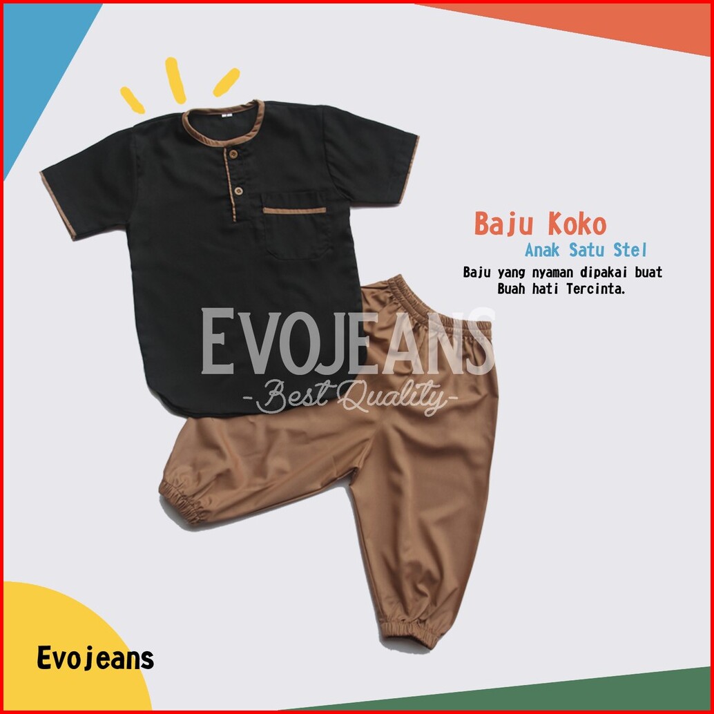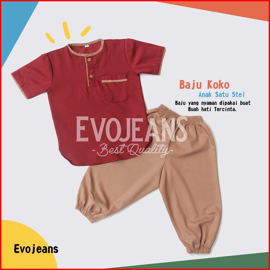 Grosir Baju Koko Anak Setelan Baju Dan Celana Umur 0-6 Tahun Bahan Toyobo Premium Adem Lembut - Evo