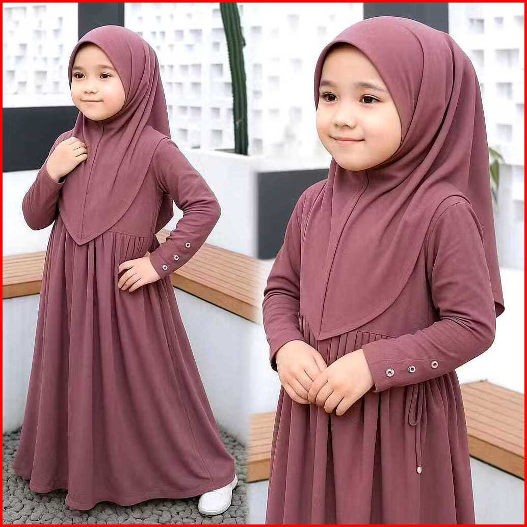 Gamis Couple Ibu Anak Innara Abaya Jersey Premium Tali Pinggang Set Hijab