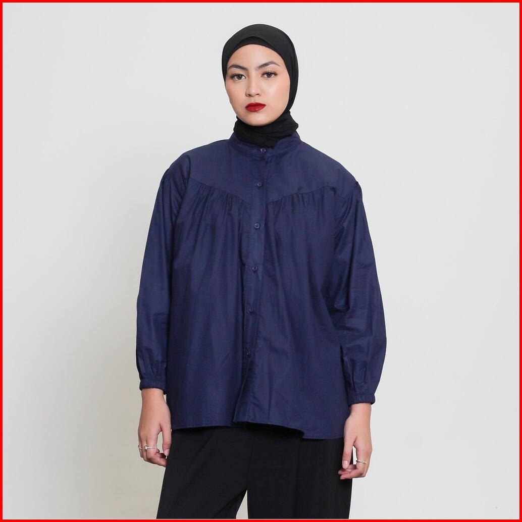 Elf Store - Emeralda Kemeja Wanita Kantoran Polos Kekinian Bahan Katun Jumbo Atasan Panjang Muslim