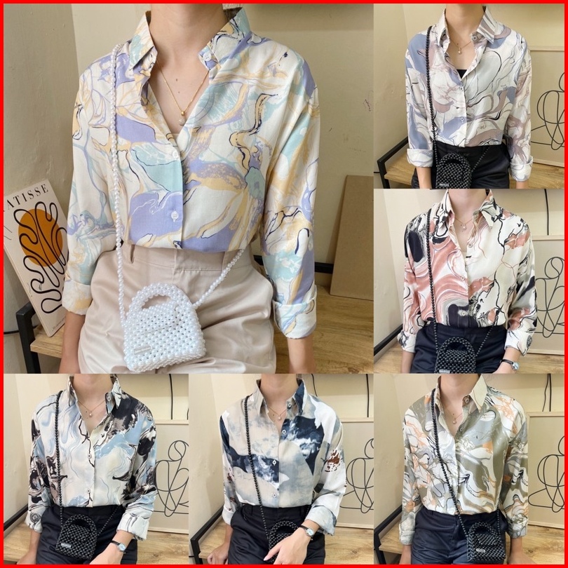Kemeja Motif Rayon Premium Korean Retro