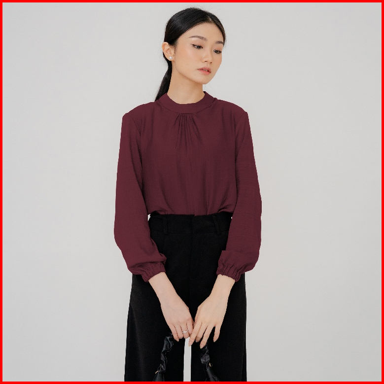 Merlyn Blouse Kemeja Atasan Lengan Panjang Waanita Long Sleeve Round Collar Woman