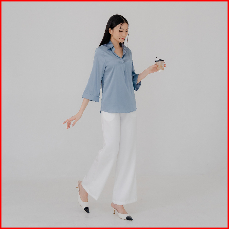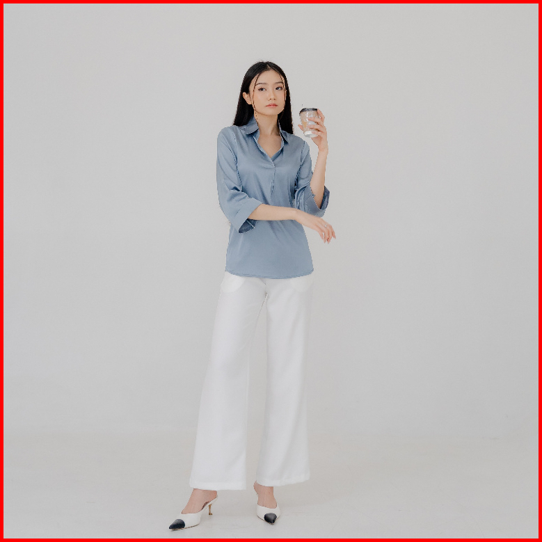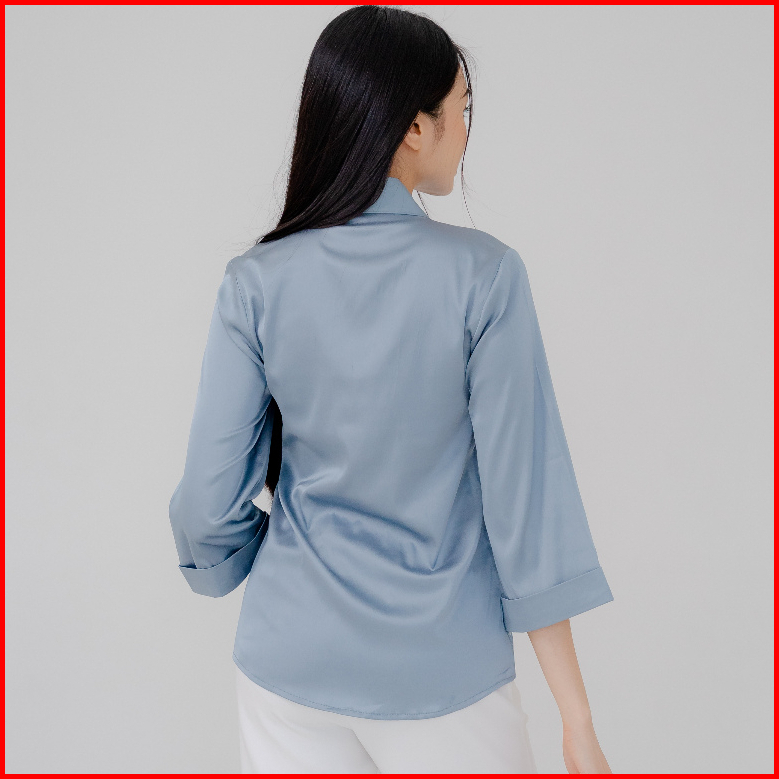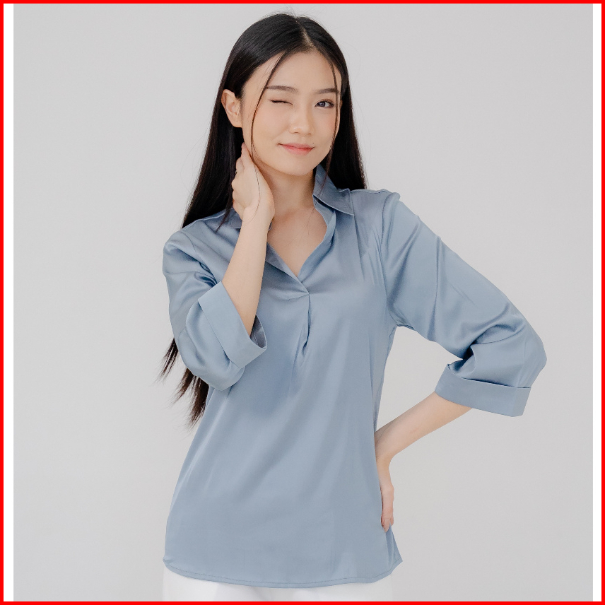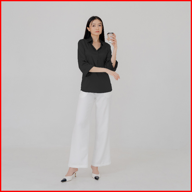 Sunflower Haley Kemeja Shirt Hitam Basic Satin Silk Premium Lengan Panjang Wanita