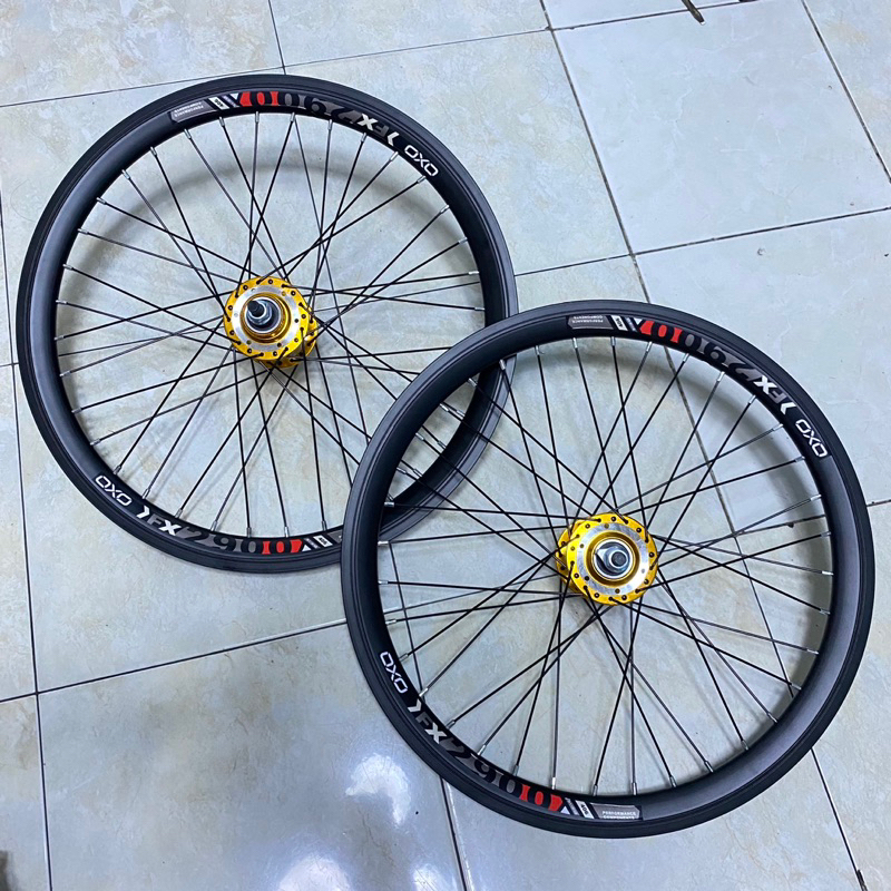 wheelset Bmx OXO 3cm uk 20inch Double wall + gir jangkrik celcius bearing loncer/velg bmx oxo 3cm Uk 20 inch