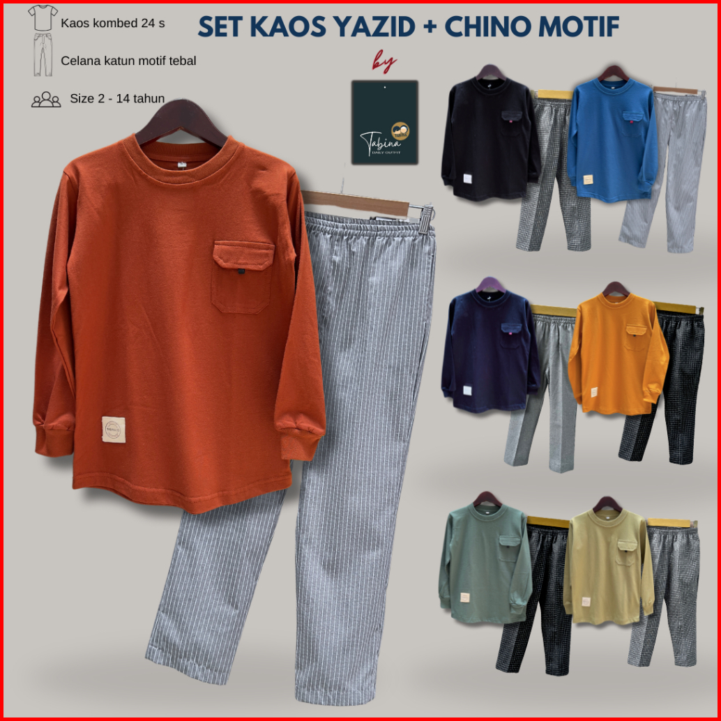 Tabina Setelan Kurta Anak Laki Laki Lengan Panjang Seri Yazid Celana Motif Usia 2 Hingga 16 Tahun