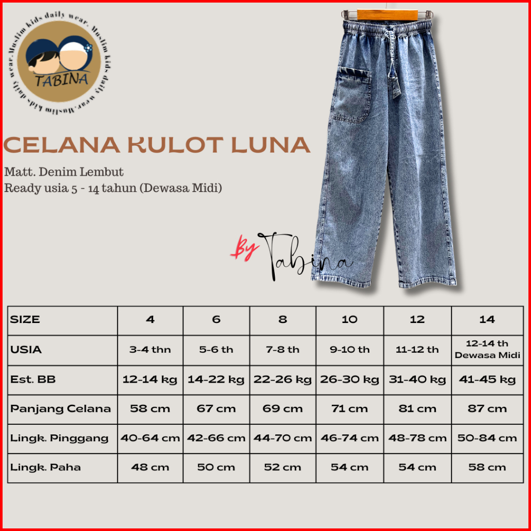 Tabina Celana Kulot Denim Anak Remaja Hingga Dewasa Seri Luna Usia 5 Hingga 14 Tahun