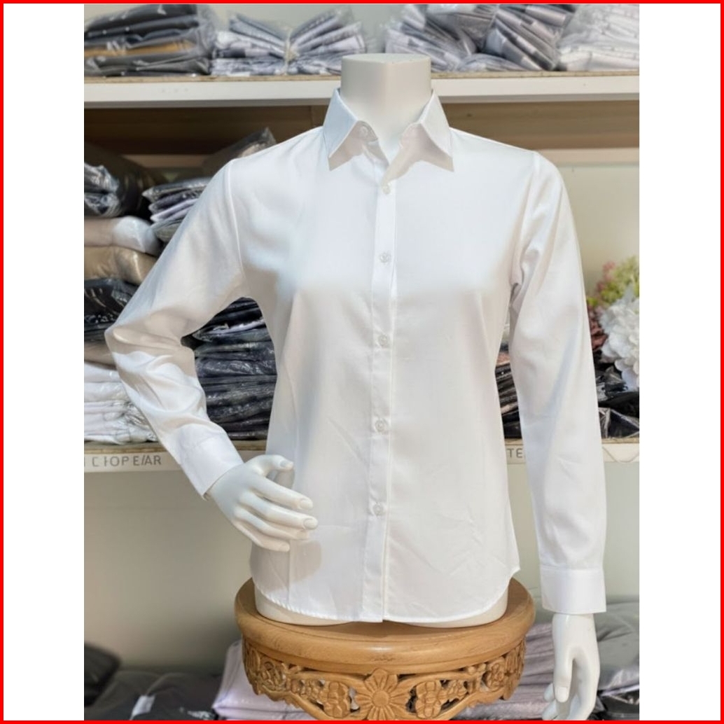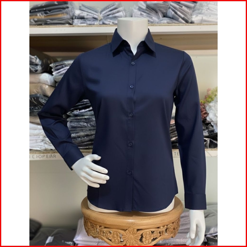 Kemeja Wanita Kemeja Cewek Polos Lengan Panjang Slimfit Hem Wanita Polos Kantor Hitam Putih Maroon Navy Kasual Pakaian S