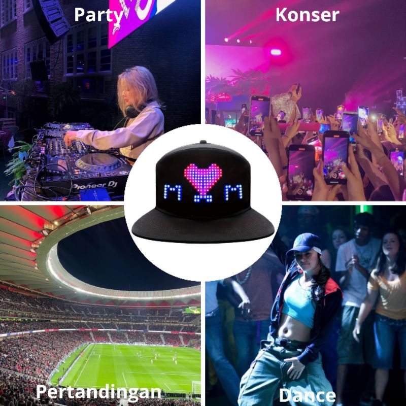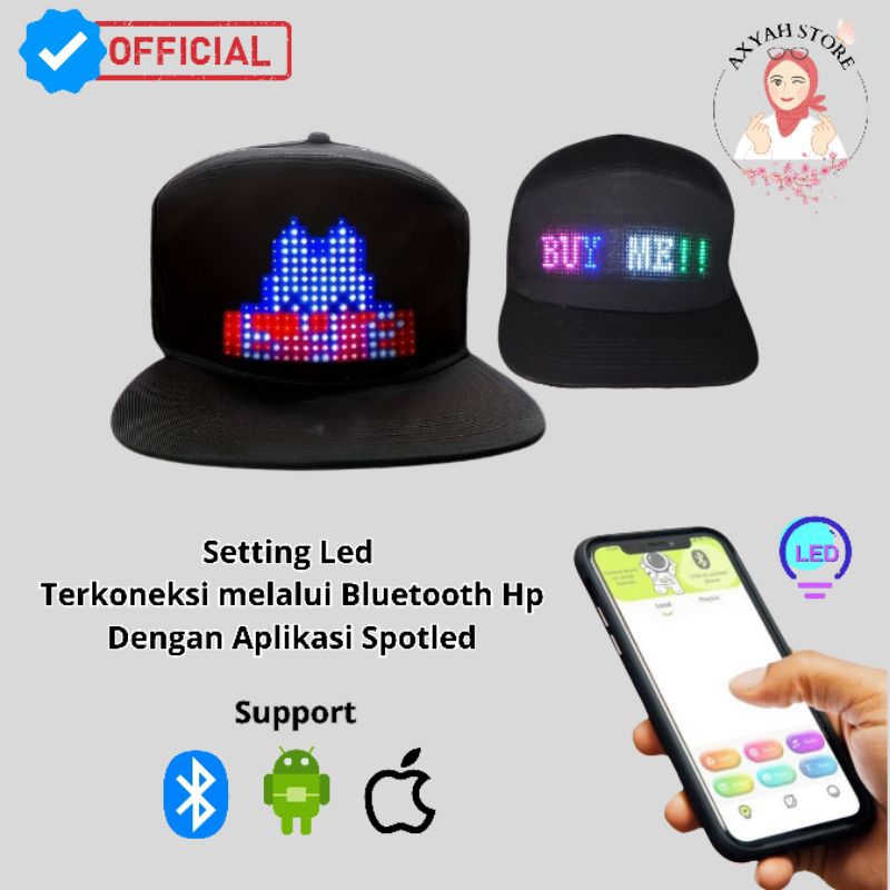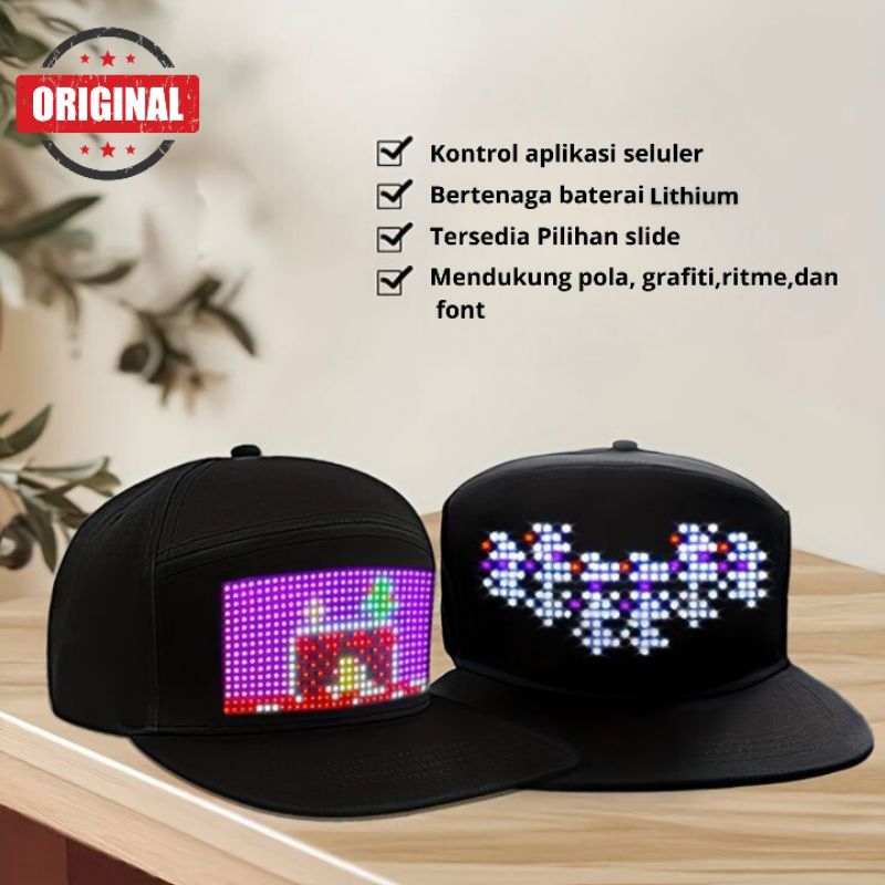 Topi led RGB / Bluetooth wireless topi laki laki snapback / topi hip hop pria Topi LED Custom Running Text RGB Topi l