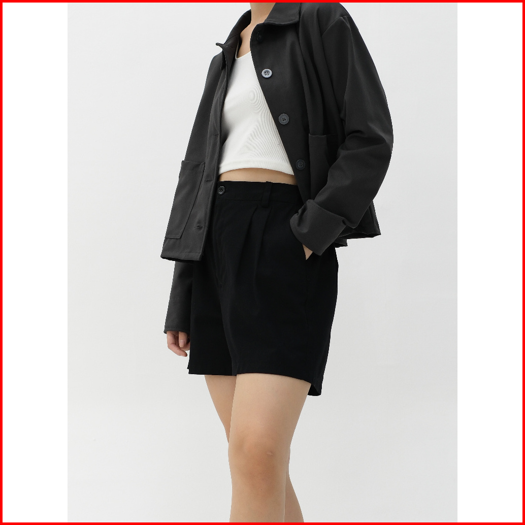 Short Pants Wanita Louise Hulm High Waist Katun Polyester