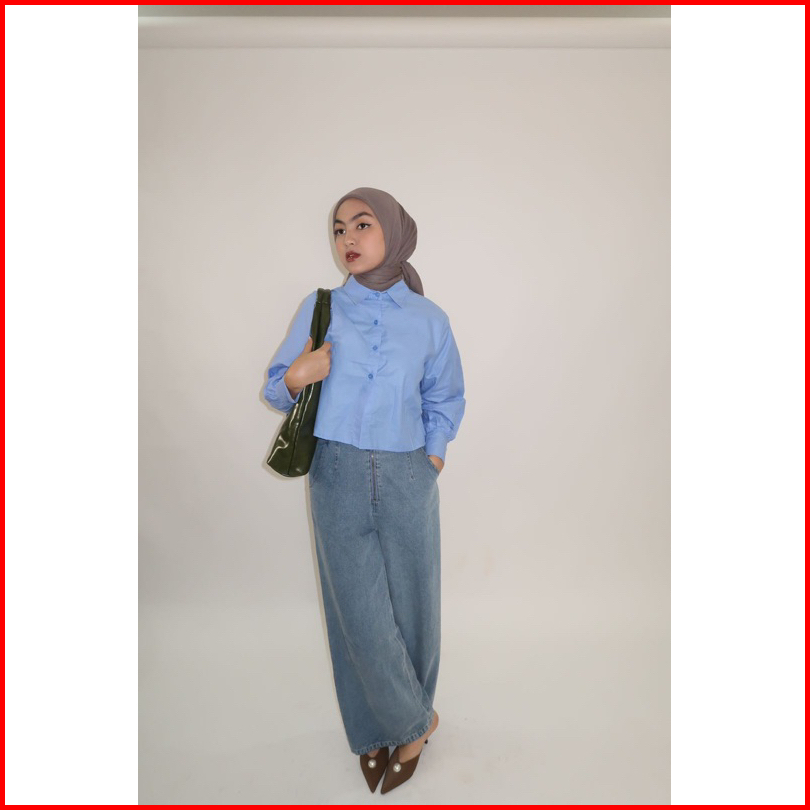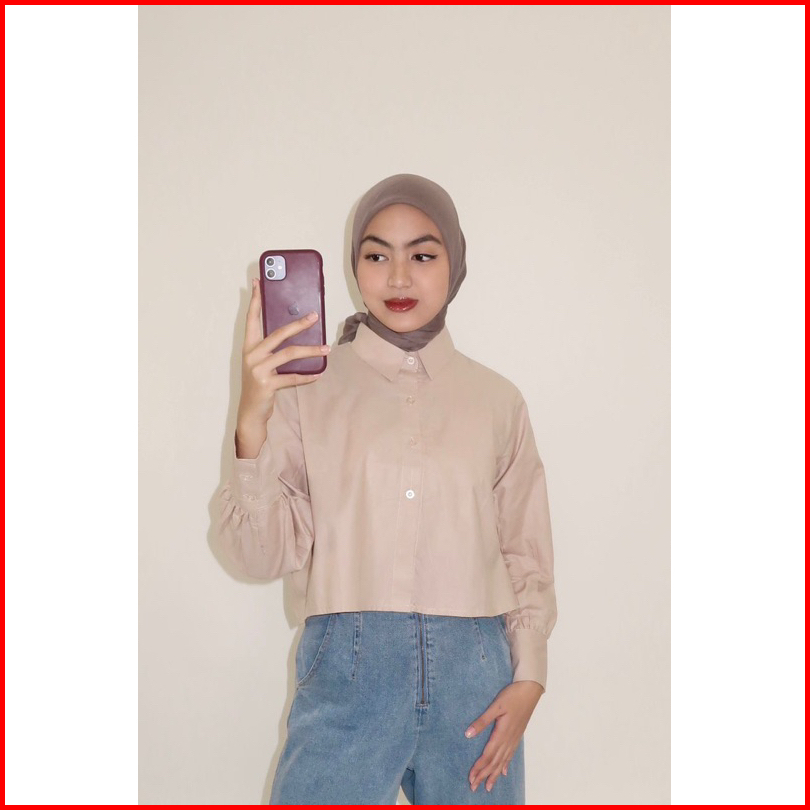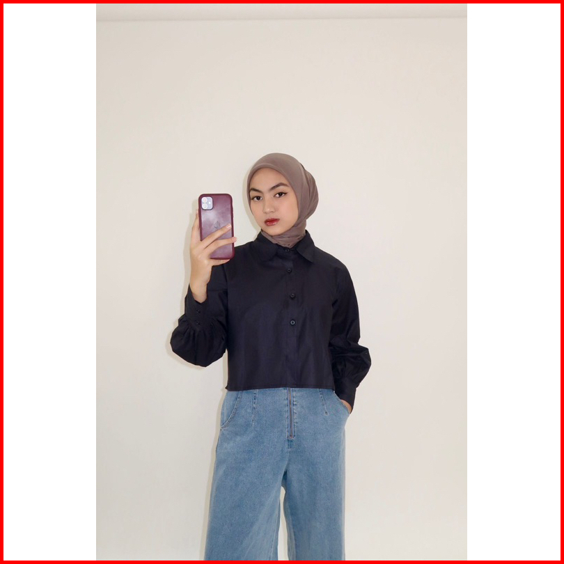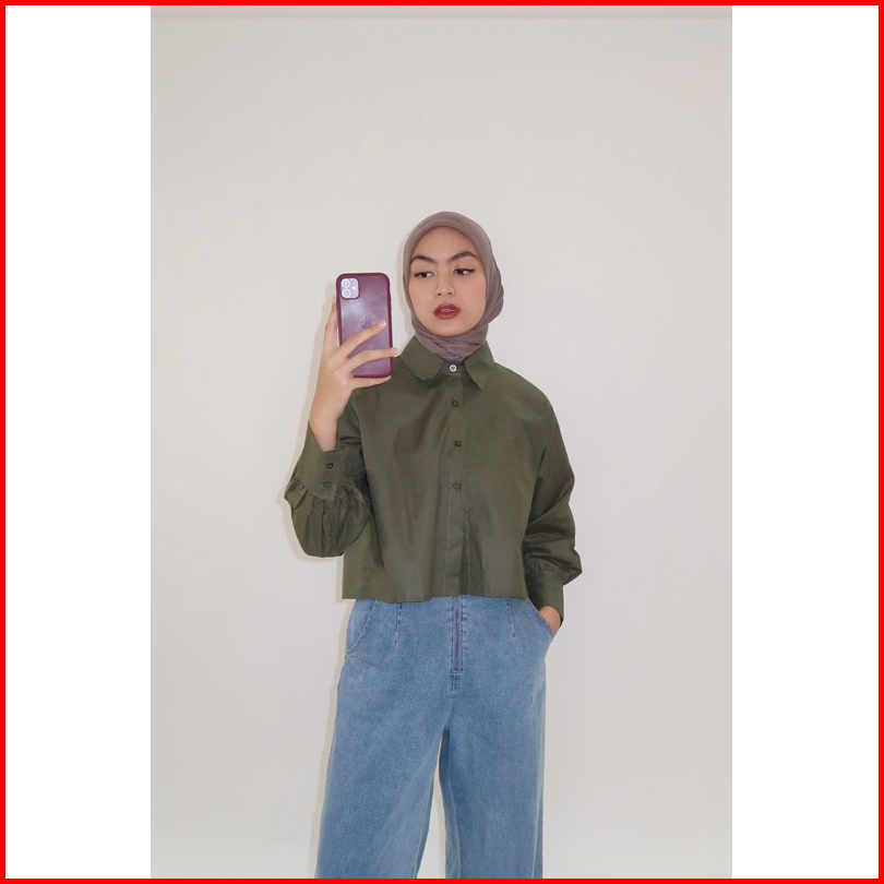 Alaya Kemeja Crop Katun Wanita Atasan Casual Kekinian
