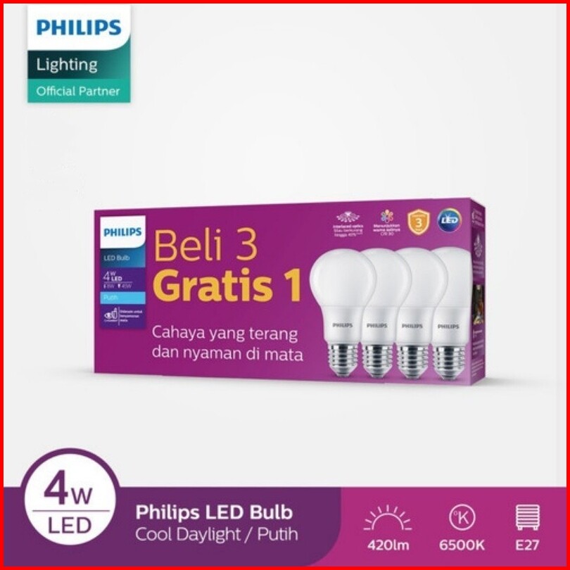 Philips Lampu Led 4w 6w 8w 10watt 12w Beli 3 Gratis 1- Multipack Lampu Ledrumah Led Bulb 220v 6500k Putih 4pcs