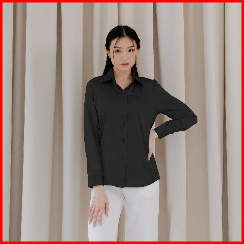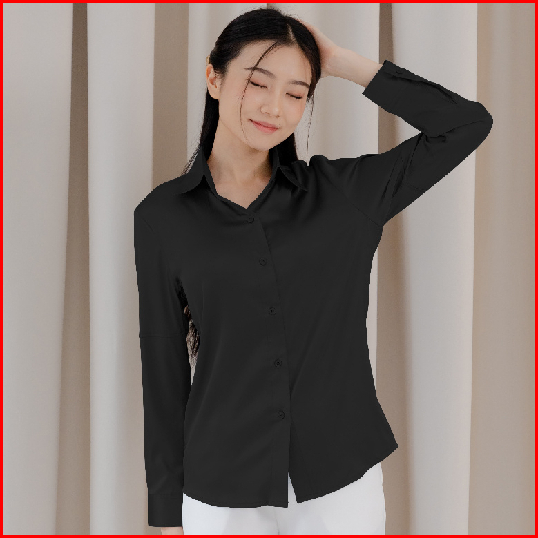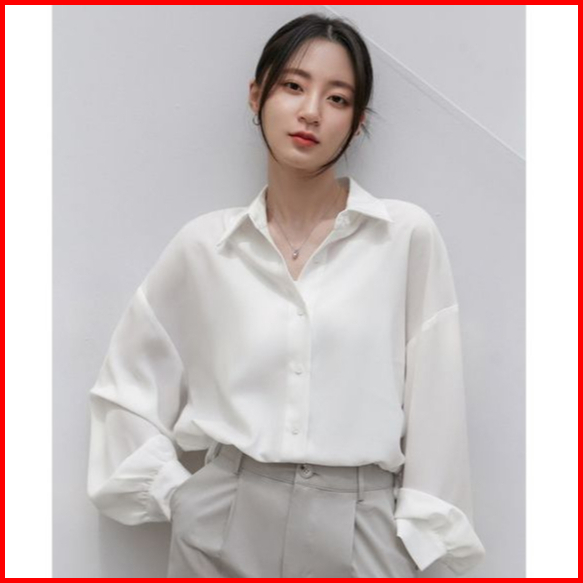 Sunflower Greta Kemeja Shirt Putih Basic Satin Silk Premium Lengan Panjang Wanita
