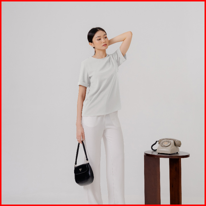Sunflower Melanie Shirt Kemeja Rayon Putih Lengan Pendek Wanita