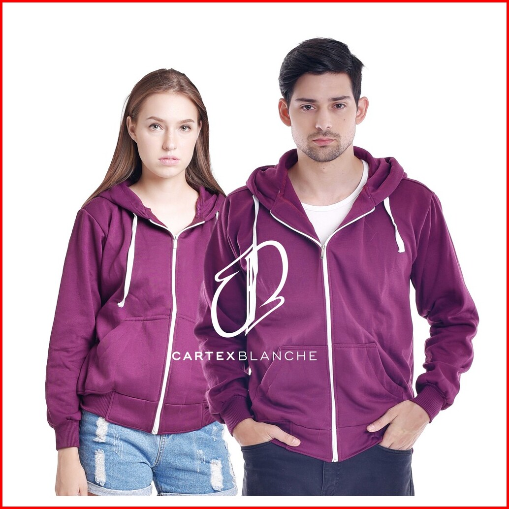 Cartexblanche - Royal Burgundy Polos Jaket Hoodie Zipper Pria - Wanita Size M - Xxl