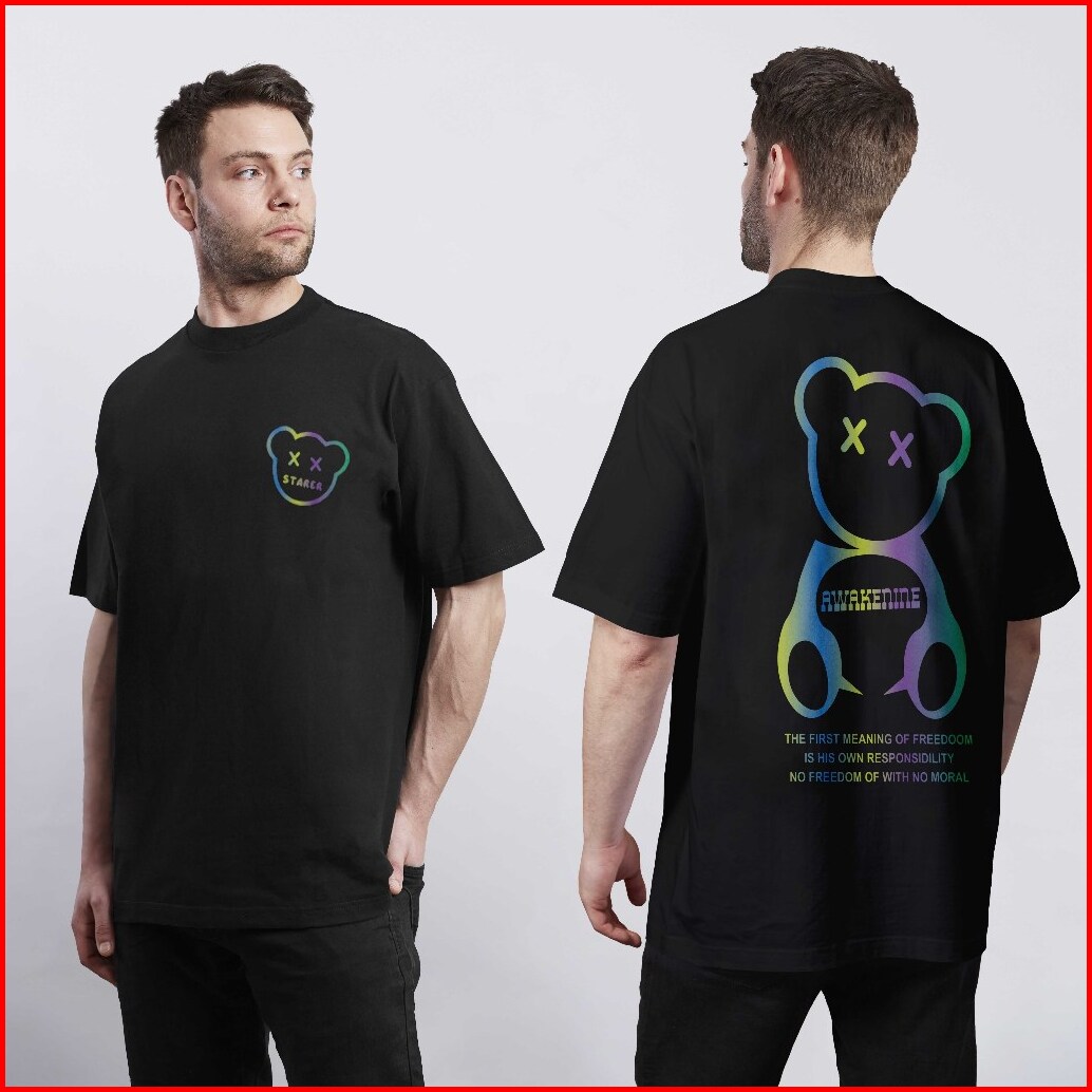 Starer Kaos Pria Baju Distro Lengan Pendek Vintage Cotton Uniseks Black T-shirt Oversize Sablon 0020