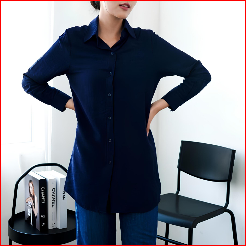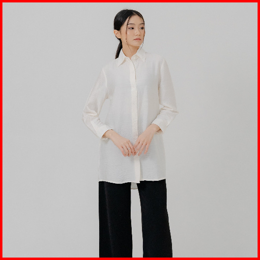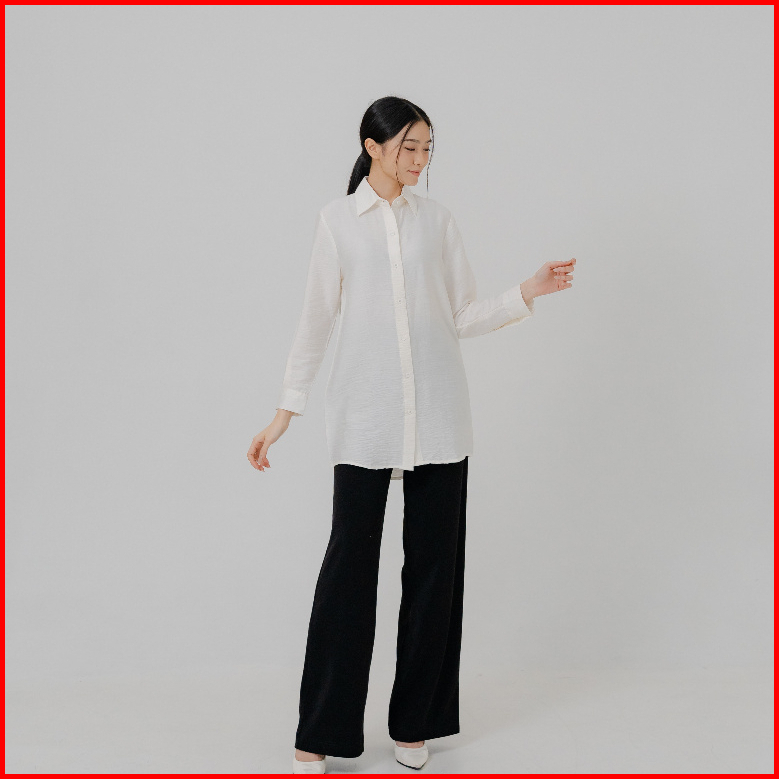 Leny Kemeja Basic Kasual Oversize Atasan Lengan Panjang Wanita