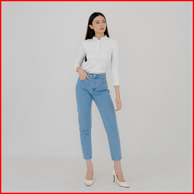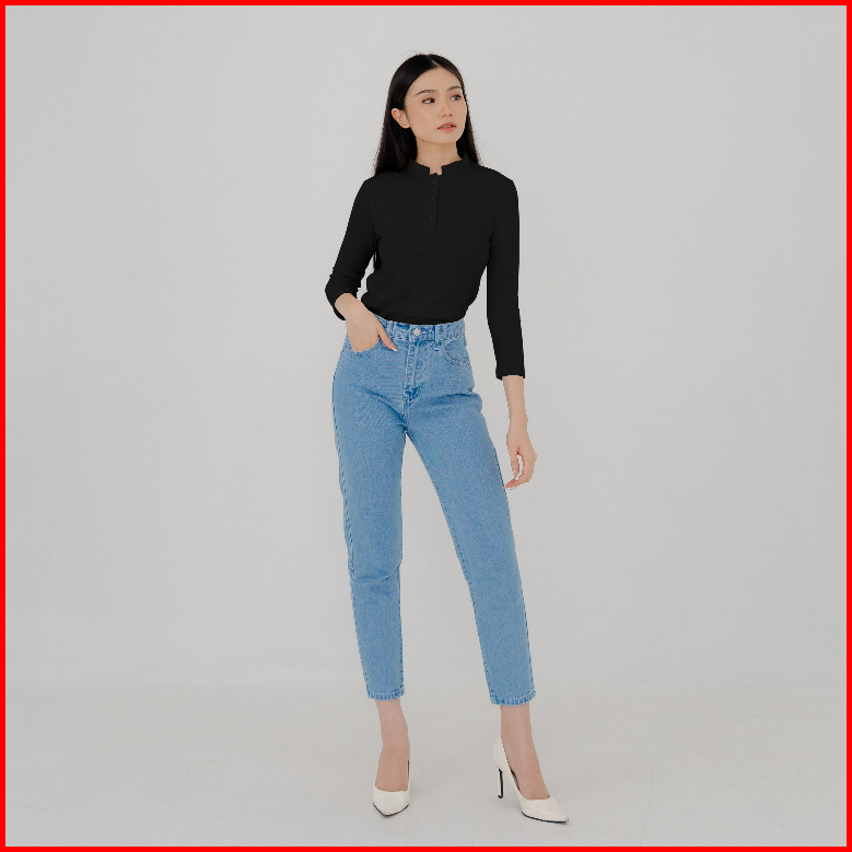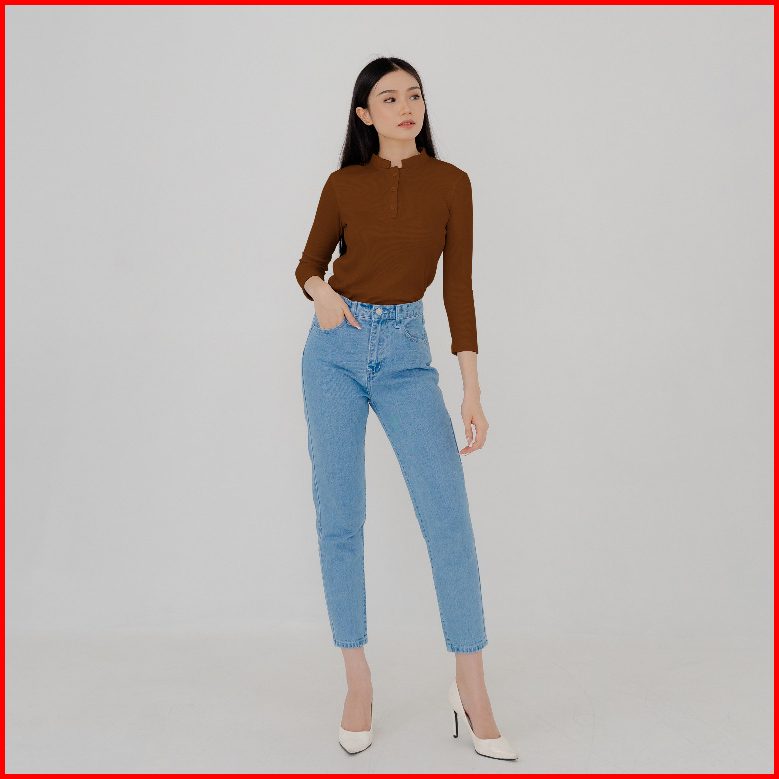 Jenny Long Sleeve Plaint Knit Top Blouse Rib Knit Lengan Panjang Wanita