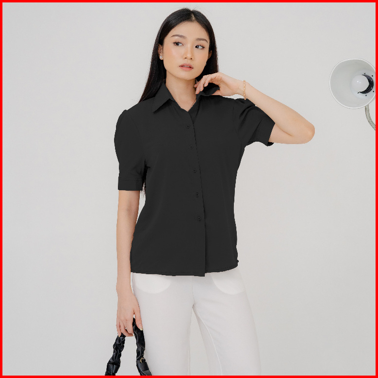 Sunflower Evelyn Shirt Kemeja Kerah Kasual Lengan Pendek Wanita