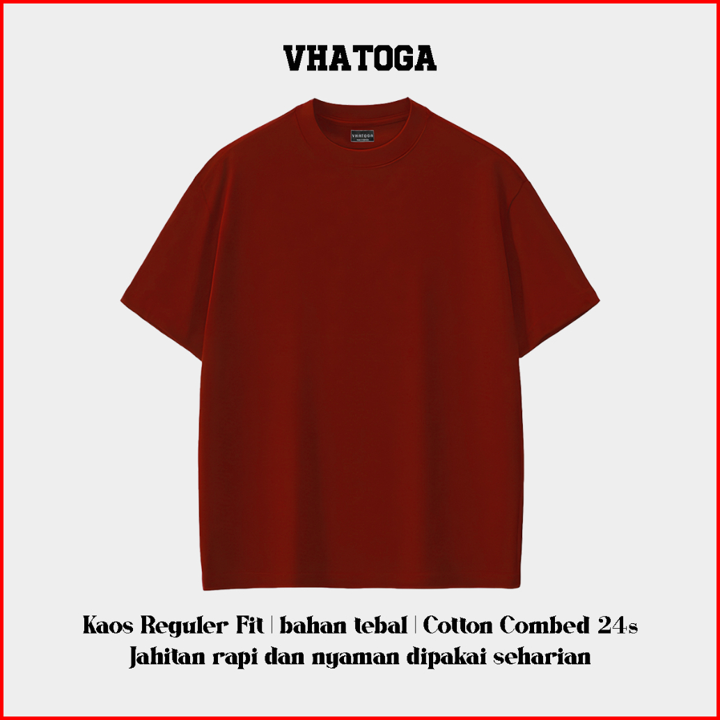 Vhatoga - Combed 24s Kaos Polos Reguler Size Cotton Combed 24s Bahan Tebal Maroon Merah