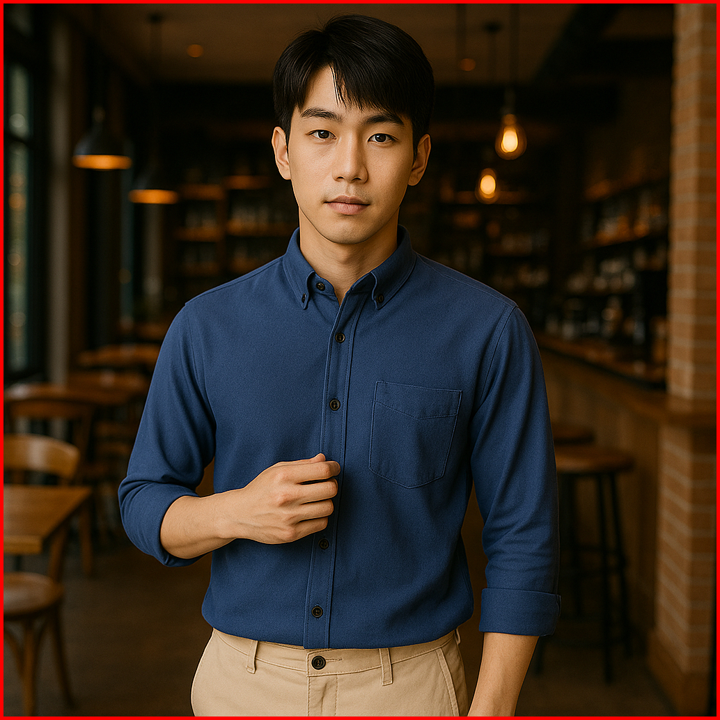 Vhatoga - Kemeja Pria Cotton Pique Long Sleeve Brown