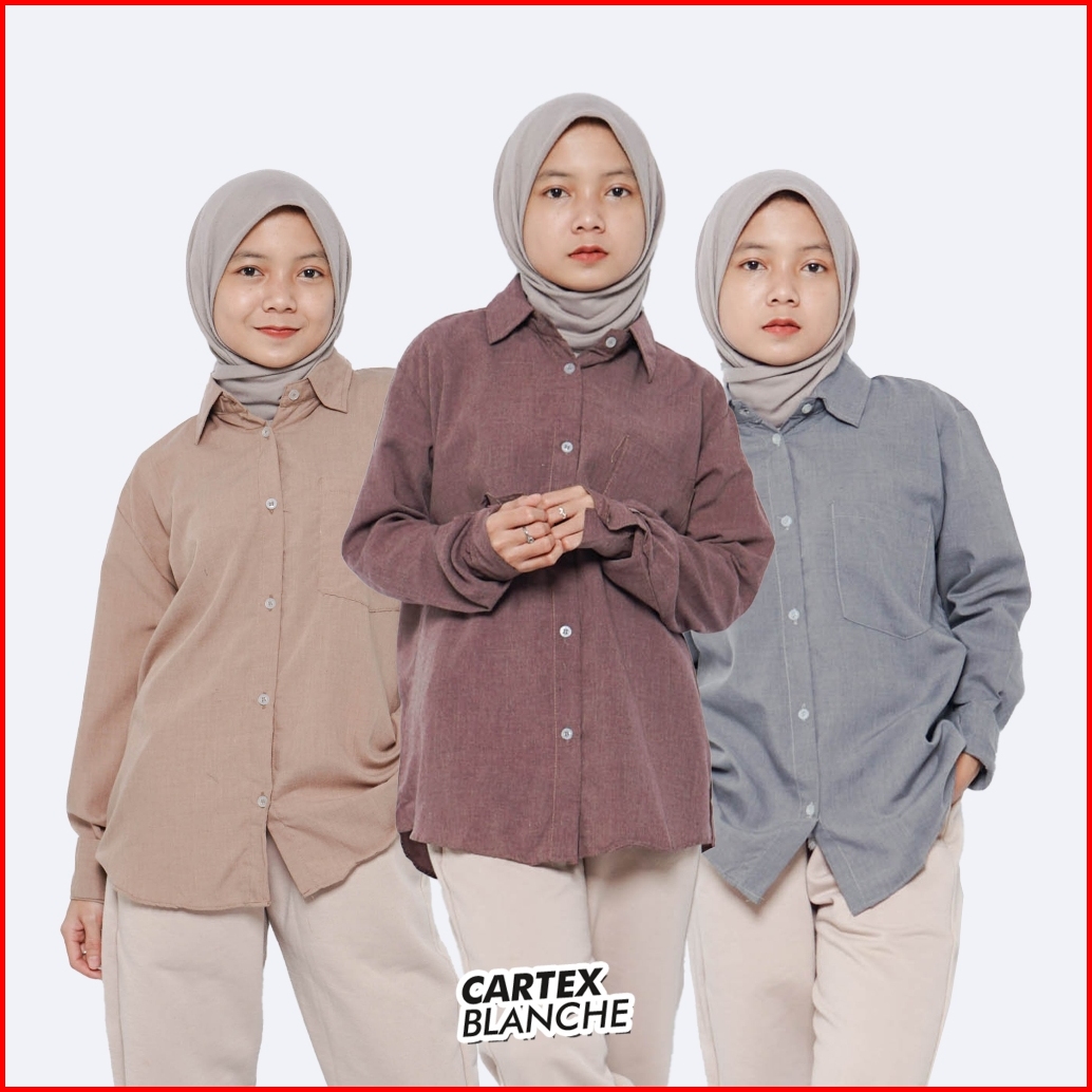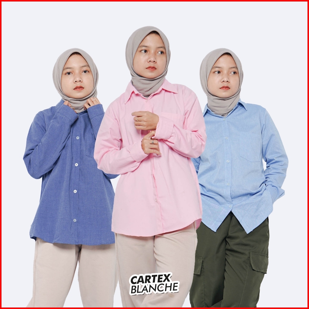 Cartexblanche Kemeja Shirt Polos Wanita Kekinian Lengan Panjang