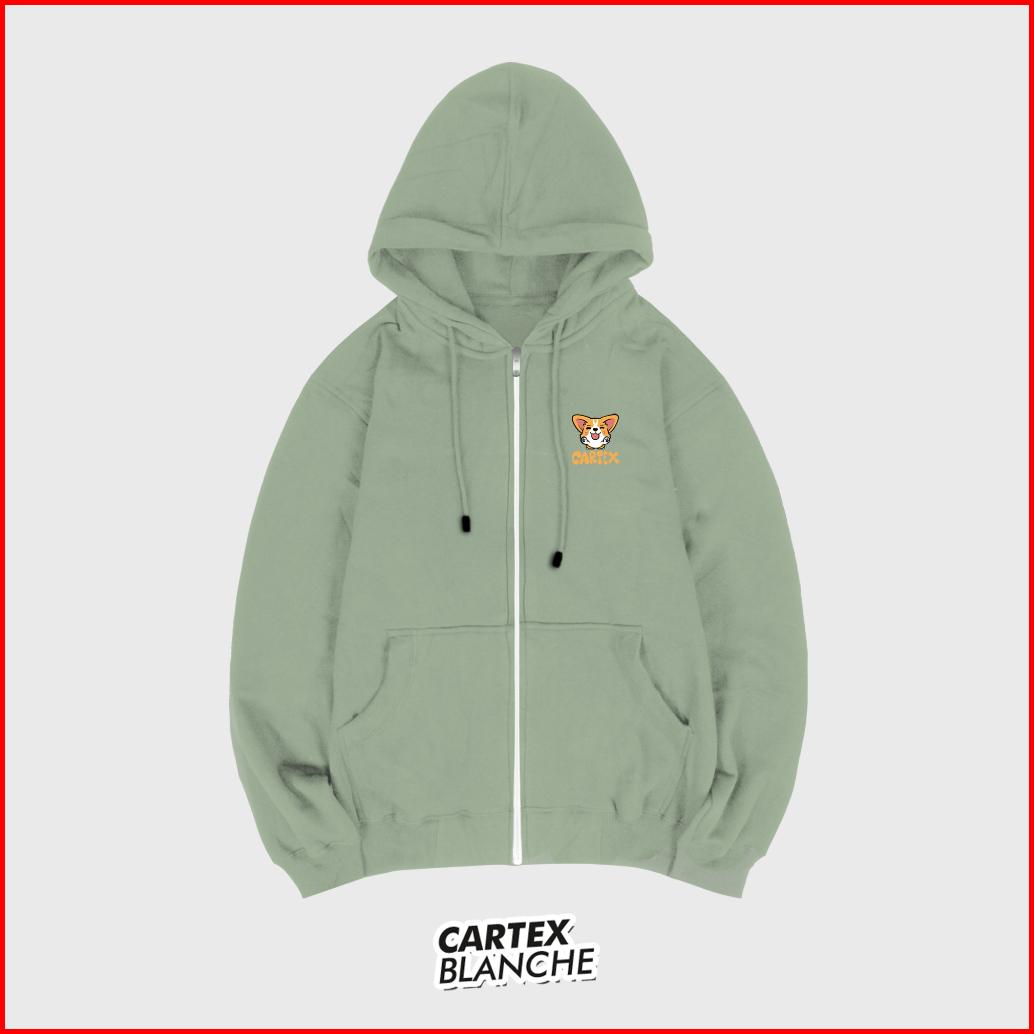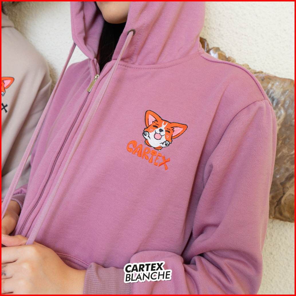 Cartexblanche - Cute Corgie Jaket Hoodie Zipper Bordir Pria Wanita Size M - Xxl