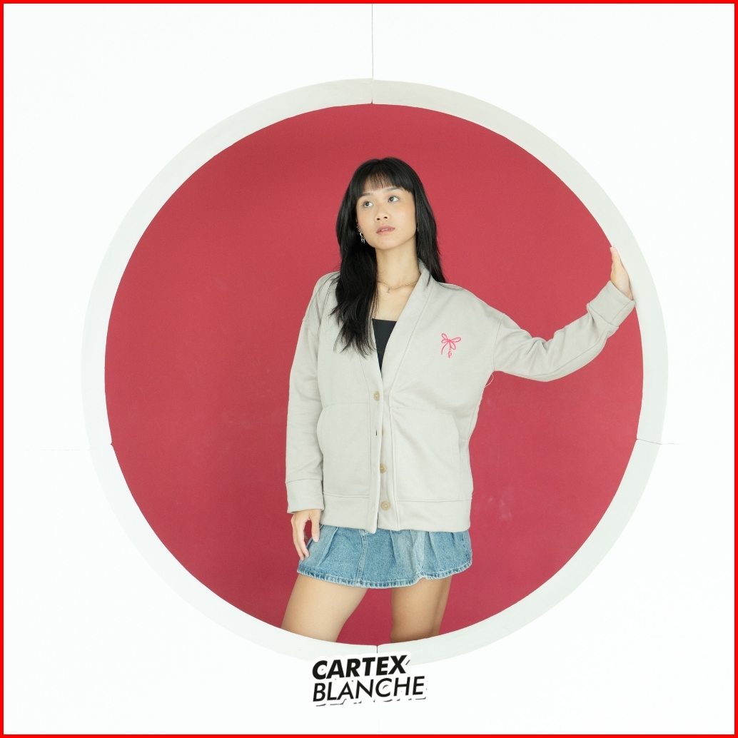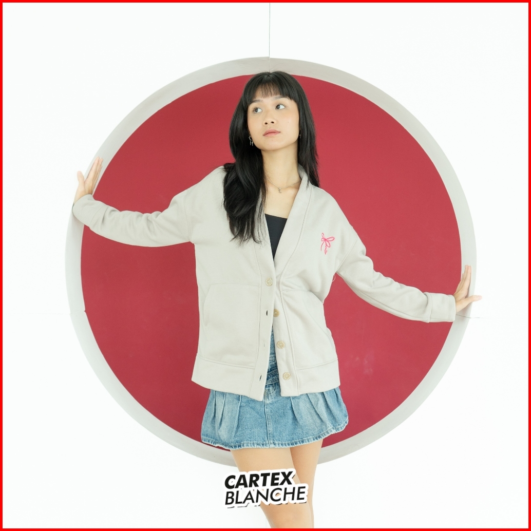 Cartexblanche Coquette Ribbon Pita Sweater Cardigan Kancing Bordir Outer Wanita