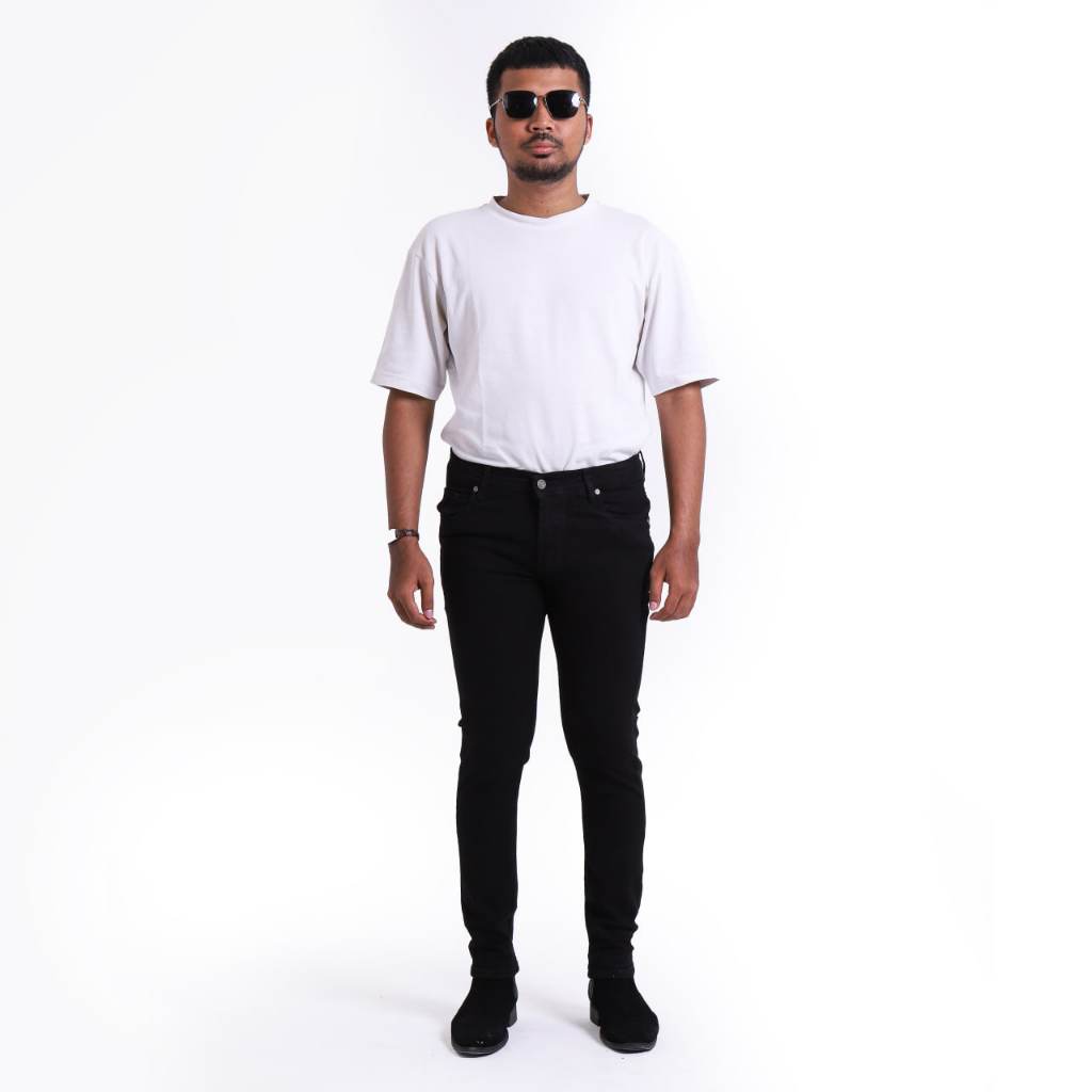Weird Jeans - Black no ripped - Celana Jeans Pria Polos Slimfit Strech