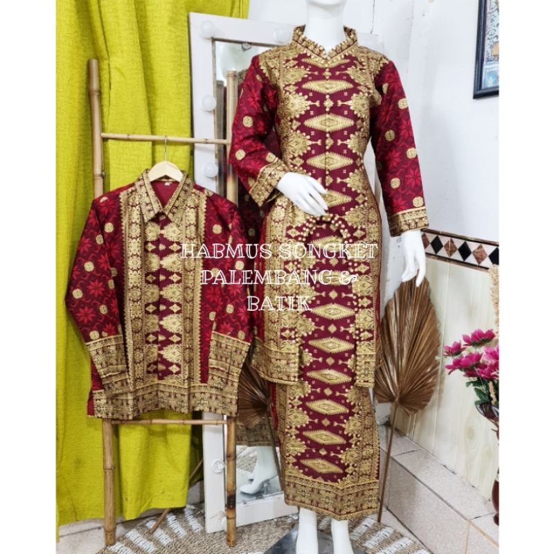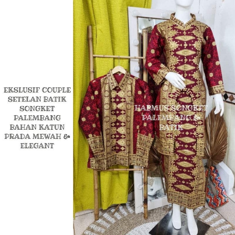 baju adat pengantin Couple setelan batik songket Palembang motif nago bintang