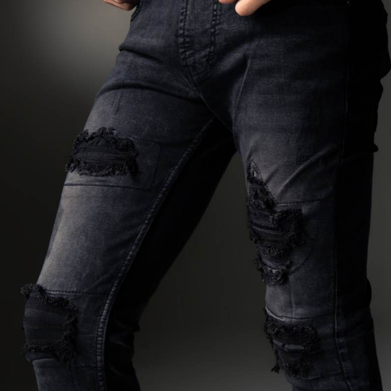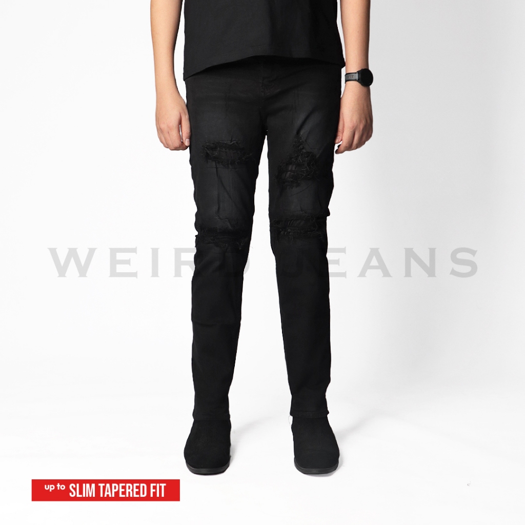 Weird Jeans - Austin Black - Celana Jeans Panjang Pria Slimfit Ripped Sobek Tambal