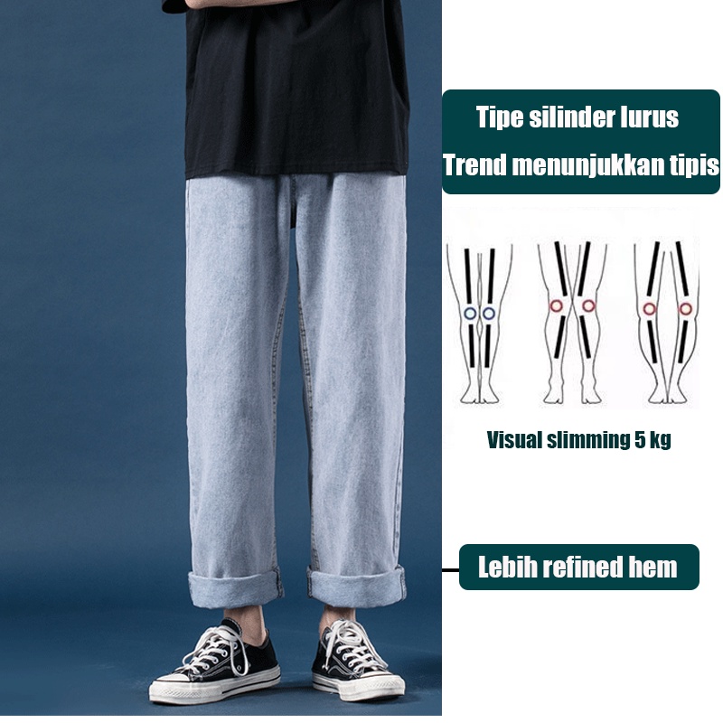 Celana Jeans Pria Celana Jeans Standar Pria Celana Kulot Pria Korean Style Baggy Pants Jeans Straight Celana Gombrong P
