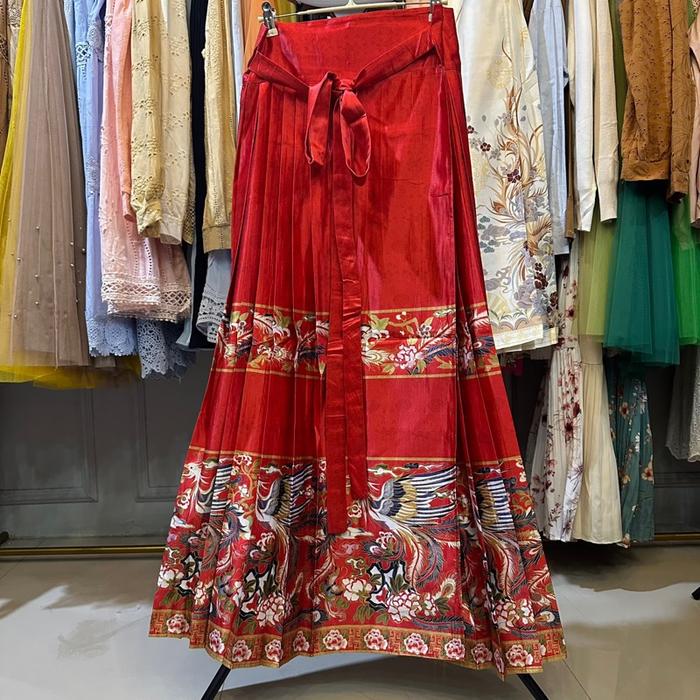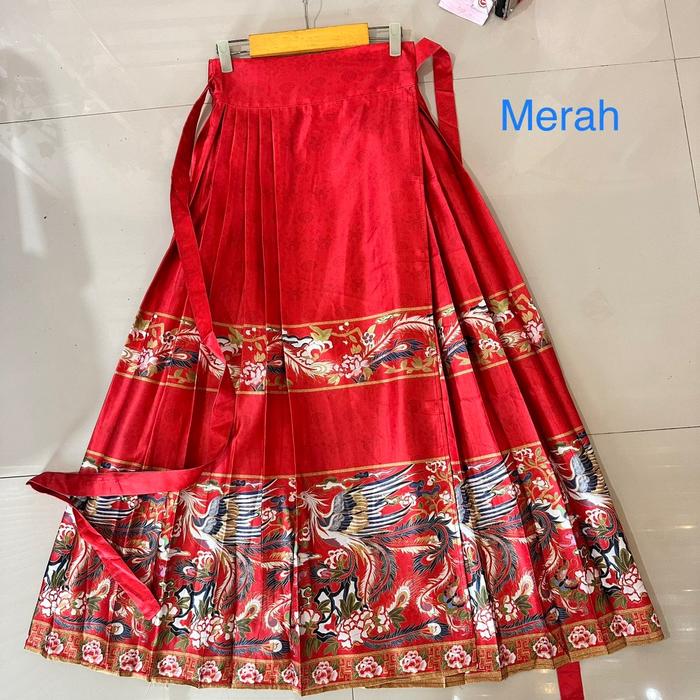 YOUNGMOODIS HARUKA HANFU SKIRT ROK LILIT BAHAN SILK PREMIUM SUPER MEWAH TEBAL ORIGINAL - MERAH L
