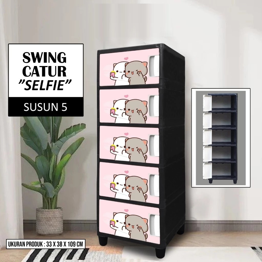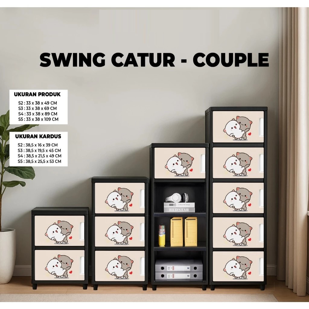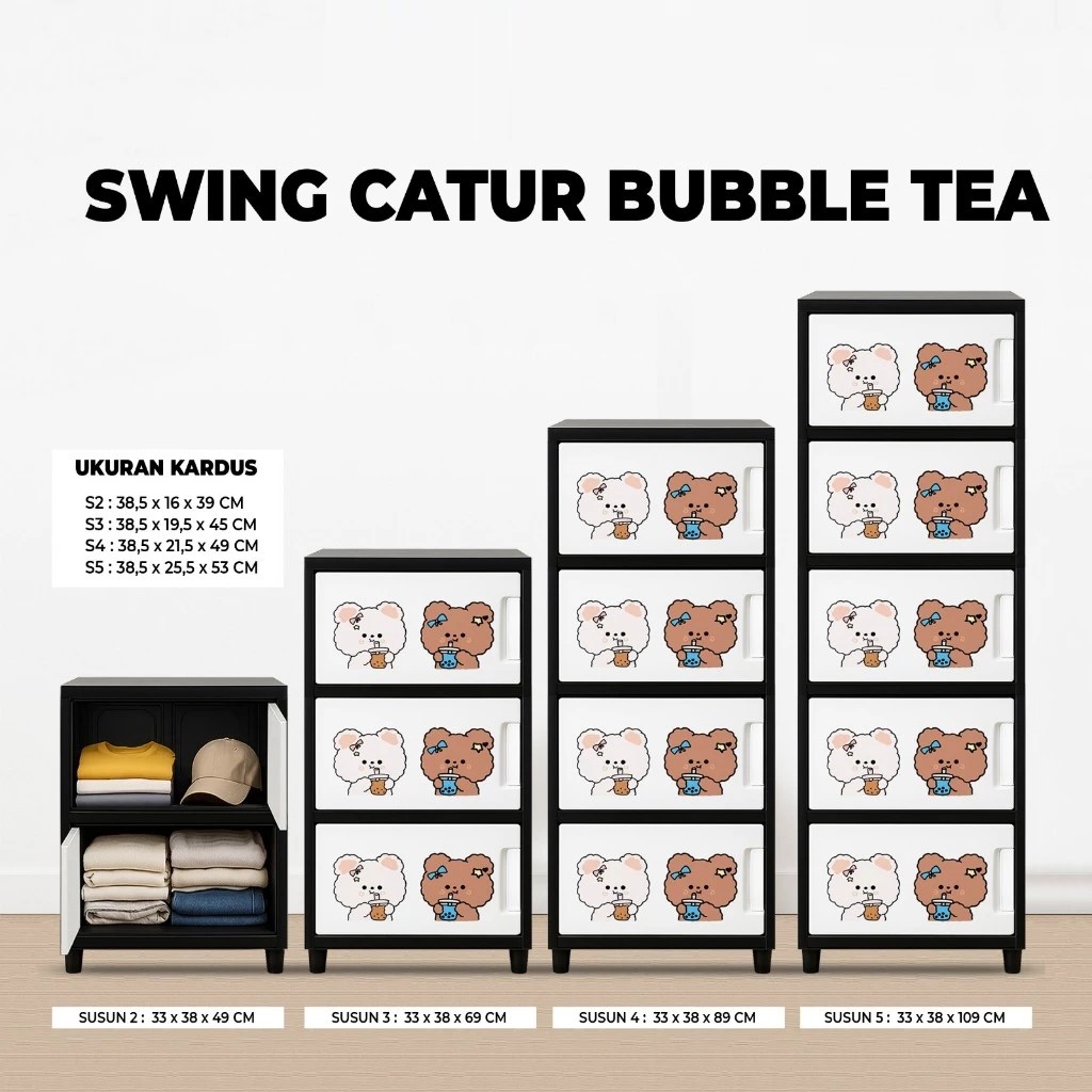 LEMARI PAKAIAN PLASTIK JUMBO BERKUALITAS 4 SUSUN LEMARI SWING CATUR PINTU PRINTING TANPA KUNCI RAK SERBAGUNA MUAT BANYAK