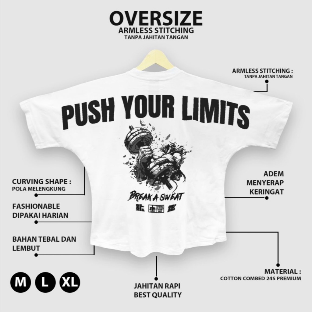 SMR APPAREL - Kaos Oversize Push Your Limuts Cotton Combed 24s Pria & Wanita Dewasa Workout Gym