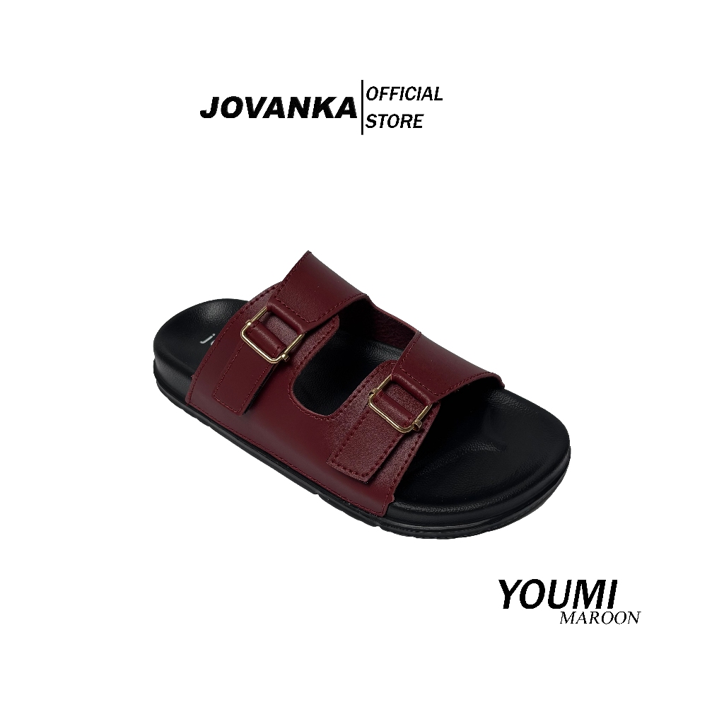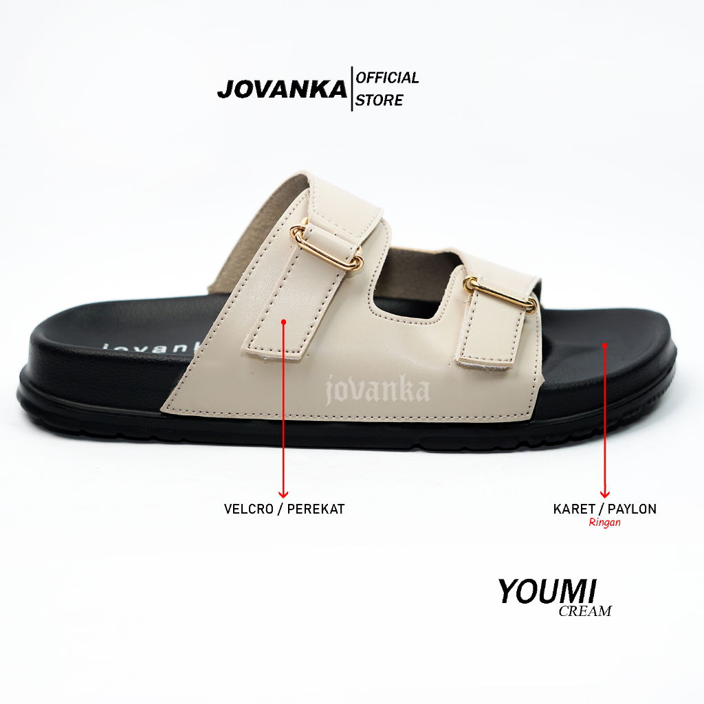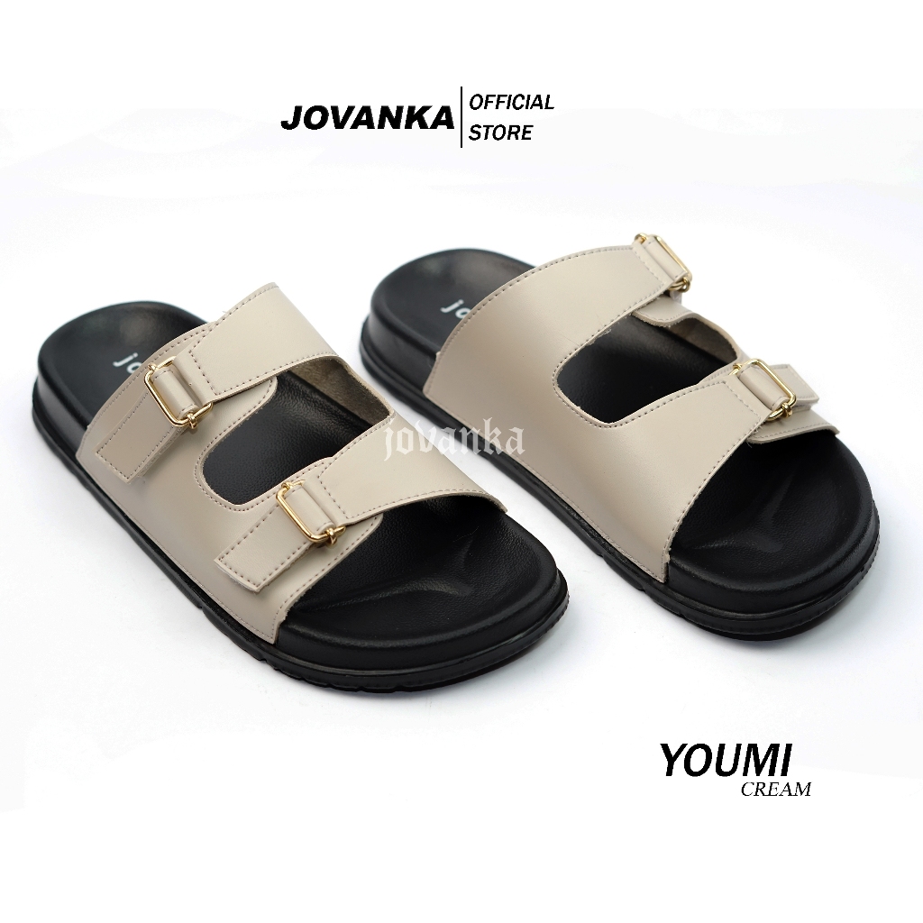Jovanka Youmi - Sandal Wanita Platform Casual | Sendal Selop Wanita Model Kekinian Cantik Elegan - Gesper Gold Perekat Aktif Sandal Cewek Karet