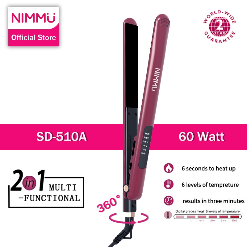Nimmu Catokan Rambut Sd 510A Pelurus Pengeriting Rambut 2 in1 Hair Straightener Catok Curly Low Watt