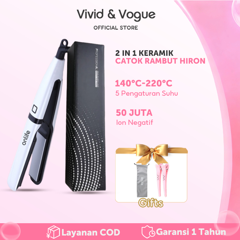 Vivid&Vogue Catokan Rambut Lurus-Keriting 2in1 Ceramic Tahan Lama Catok Pelurus Rambut