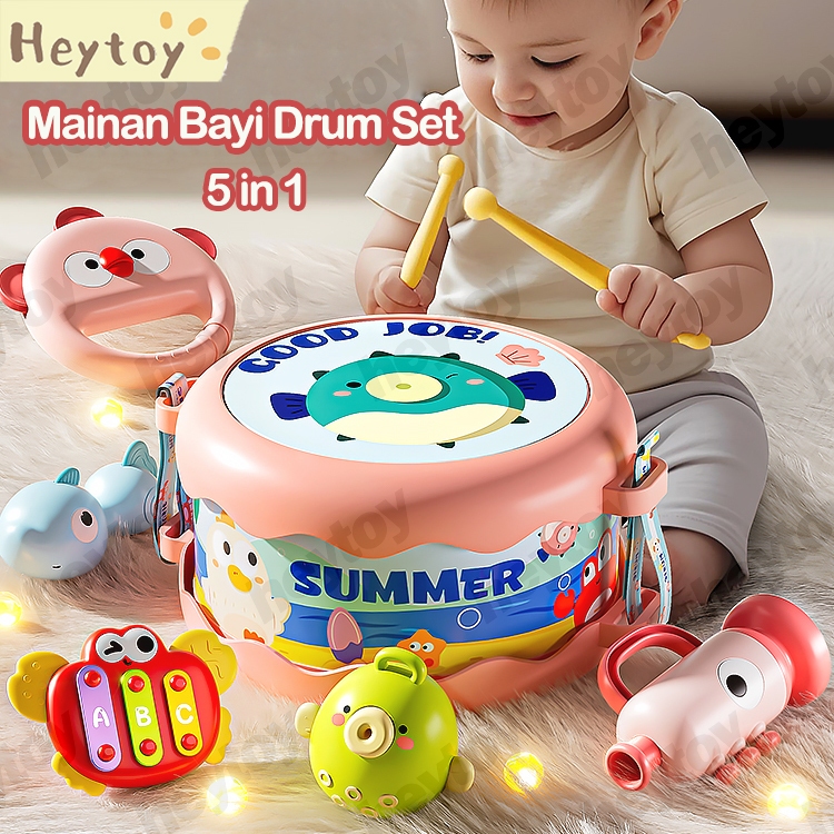 Mainan Bayi Drum Set 0 -3 Tahun 5 in 1 Mini Musik Drum Mainan Anak Edukasi Mainan Instrumen Perkusi