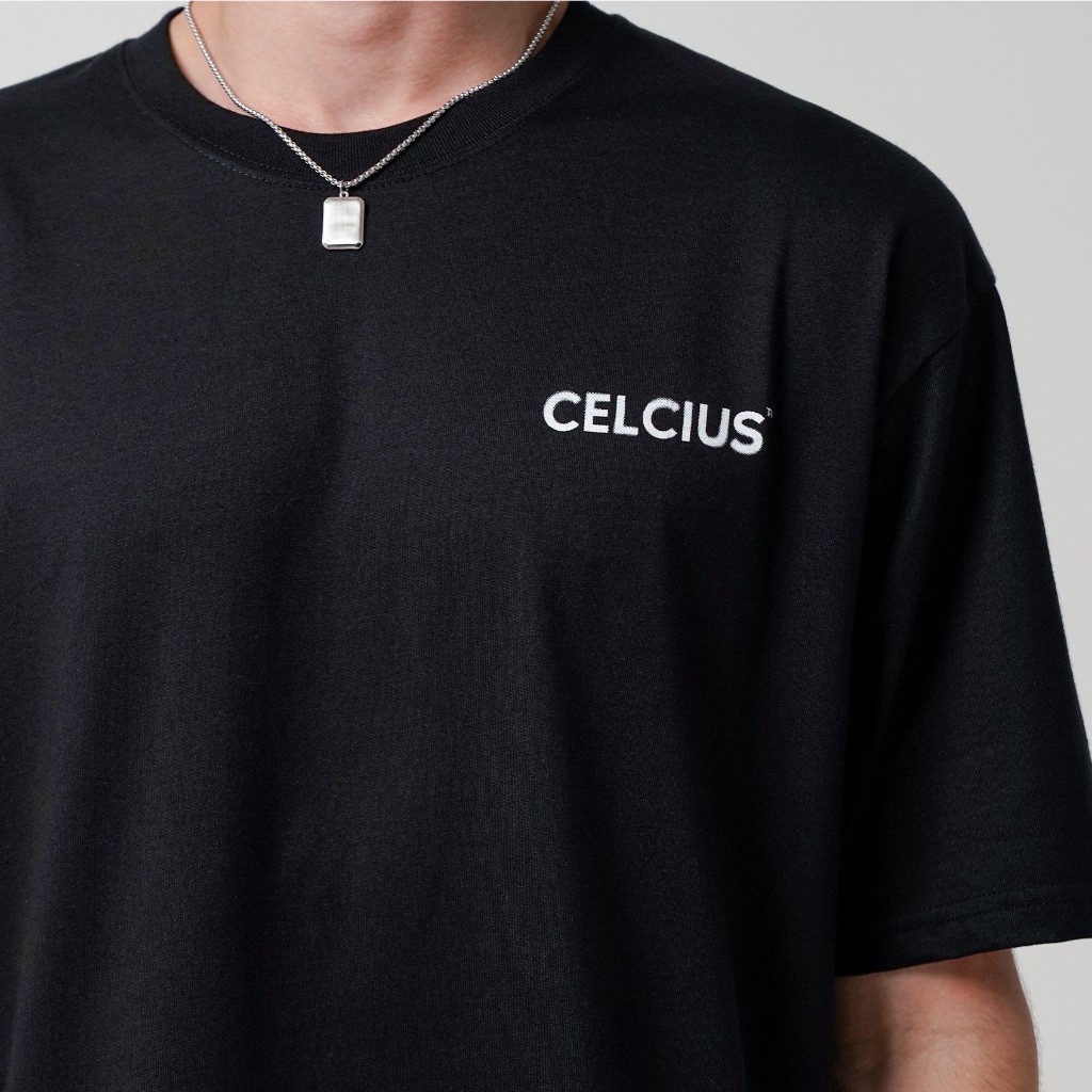 CELCIUS Kaos Lengan Pendek Oversize LIN000900C Hitam Kaos Pria dan Wanita