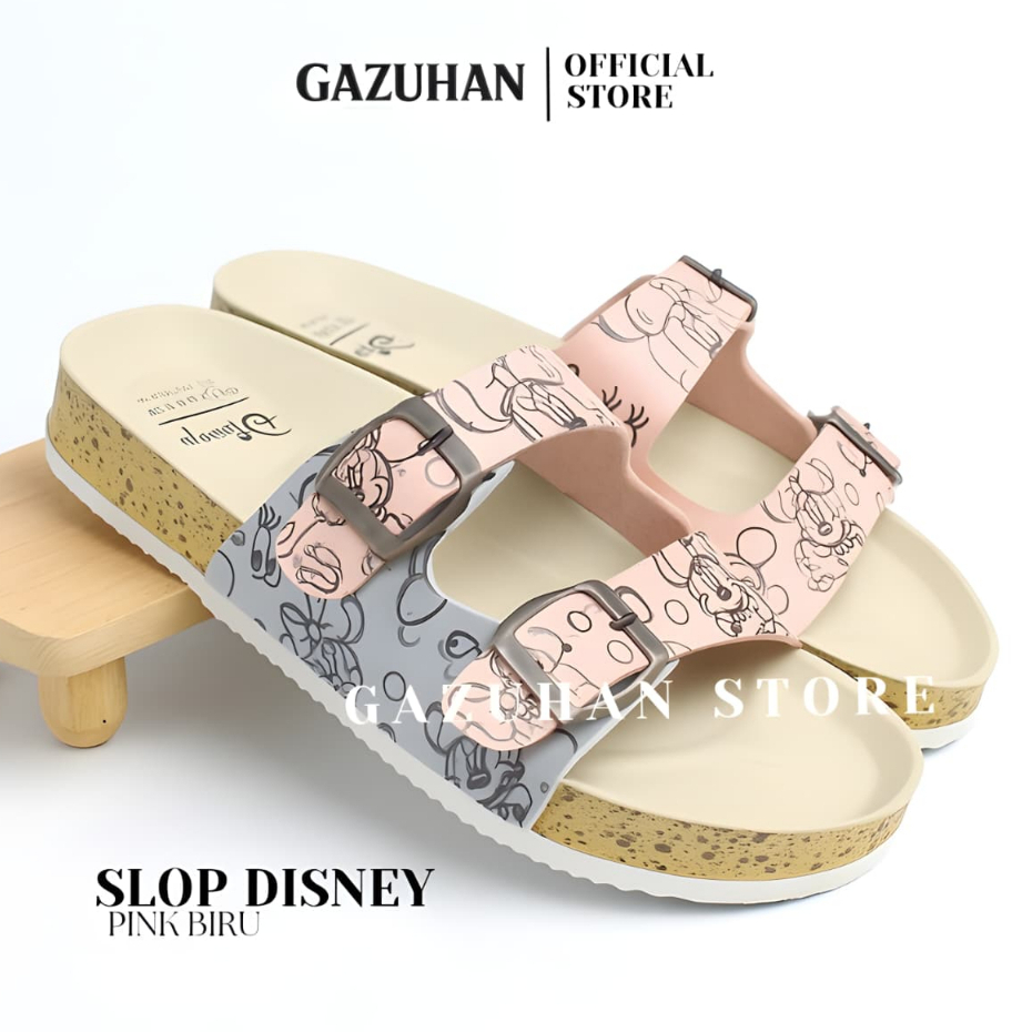 Gazuhan - Sandal Wanita Disney Nevada Slop Biru Pink Terbaru