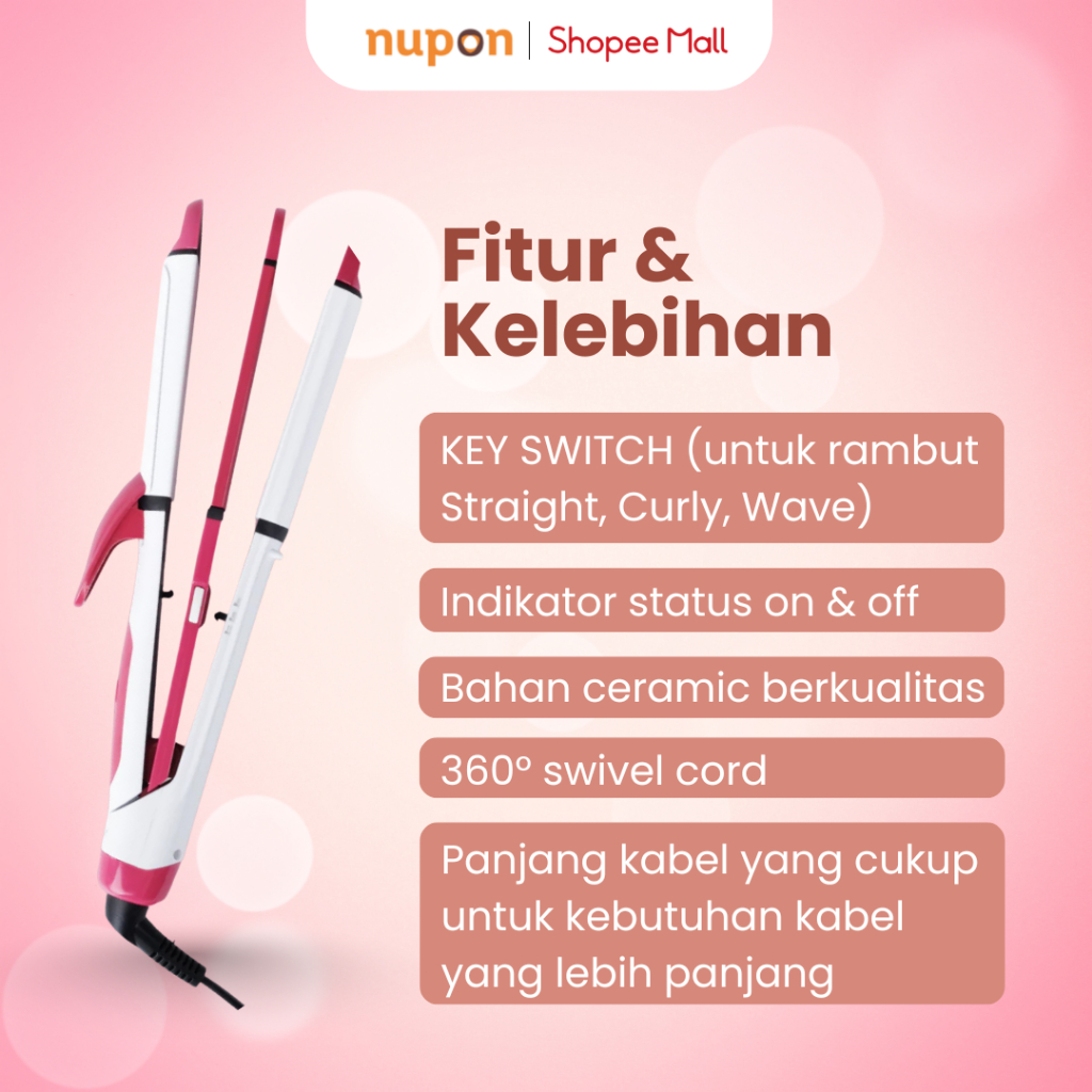 NUPON - Catok Rambut Hair Straightener Curly Multifungsi 3 in 1 NHS-187
