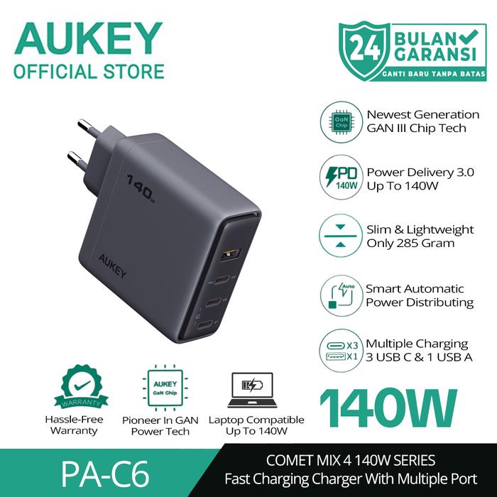 AUKEY Charger Type C 140W GAN III PD 3.0 PPS Super Fast Charging Comet Mix 4 140W Series PA-C6