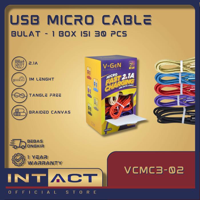Kabel Data MicroUSB V-GeN VCMC3-02 Fast Charging 2.1A 1 Box isi 30pcs Kabel Braided Tali Sepatu