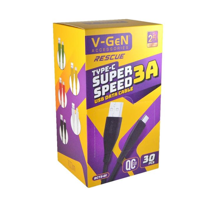 Kabel Data USB To Type C V-GeN BCT3-01 Fast Charging QC3.0 1 Box isi 30pcs VGEN