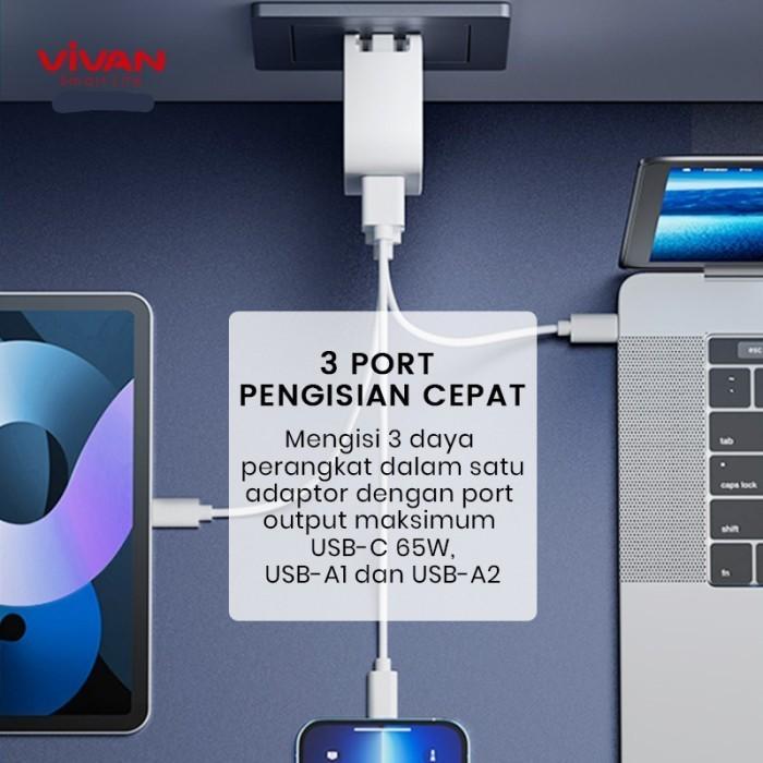 Vivan GaN02S Adapter Charger 3A Quick Charging 3 Port 65W 2in1 US/UE